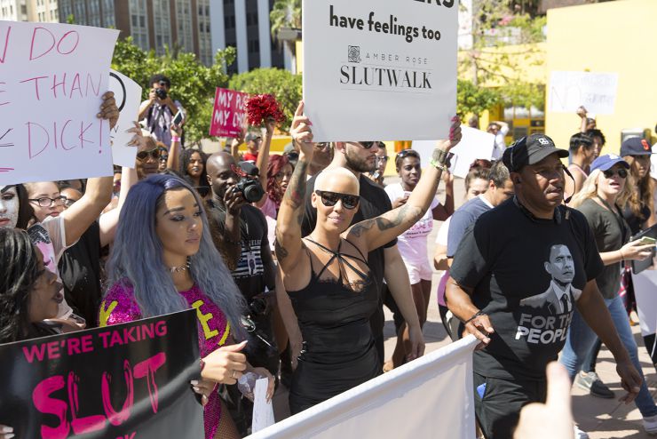 Businesswoman, author and model Amber Rose organized and led Amber Rose SlutWalk, an event to combat slut-shaming and rape culture, in downtown Los Angeles on Saturday. The event included a march, a poetry slam, a fashion show, musical acts, a comedy show and panels. There were also some famous faces that showed up to the event in support of Rose’s cause.