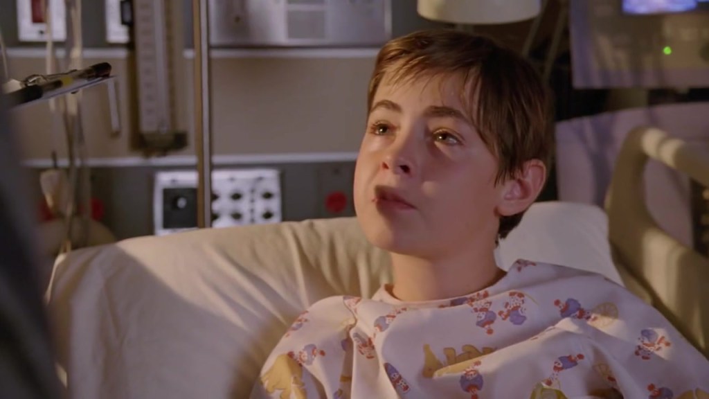 On American Horror Story: Hotel, “Room Service,” Iris returned to the hotel as a vampire and she wasn’t taking anyone’s shit; John was fired and he was forced to hand over his badge and gun; Liz Taylor’s story was told; and Alex cured a dying child by giving him her blood, and this, in turn, resulted in an entire school full of children being turned into vampires.