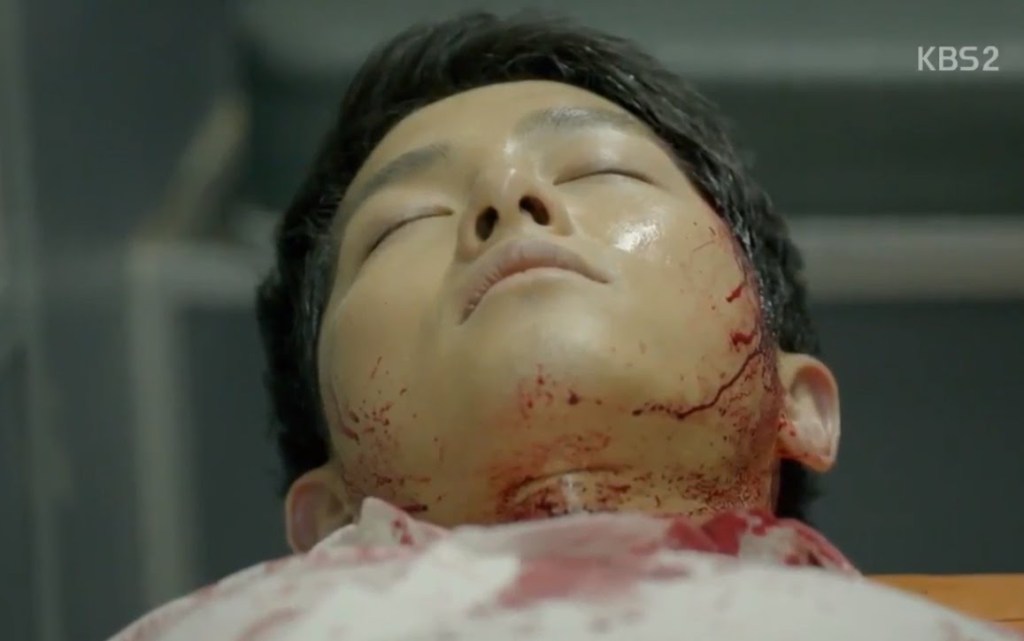 Shi-Jin died and was brought back to life by Mo-Yeon on Descendants of the Sun, episode 14, and once he came back to life, Shi-Jin commenced interrogating a North Korean soldier.