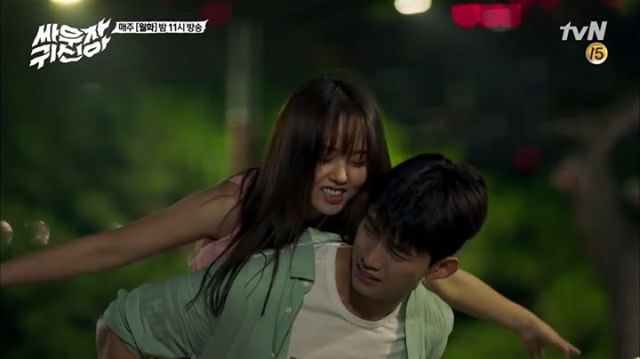 Bong-Pal and Hyun-Ji had a tiff on Let’s Fight, Ghost, episode 4, but the two later made up when Hyun-Ji got drunk and groped by another ghost.