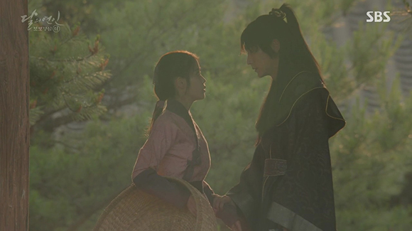 Hae-Soo was demoted to water maiden on Moon Lovers: Scarlet Heart Ryeo, episode 12, and while So didn’t care about her new status and he still wished to be with her, she pushed him away for both her and his own good.